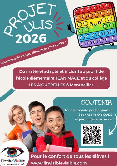 Motivés à apporter notre soutien au dispositif d'Unité Localisée pour l'Inclusion Scolaire, nous fournissons chaque année du matériel d'adaptation à 2 classes de Montpellier.